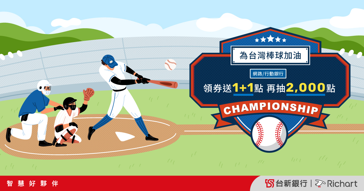 為台灣棒球加油!領券送1點,再抽2,000點-台新銀行